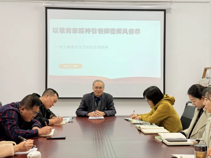 为深入贯彻落实习近平总书记关于加强思想政治教育的重要论述,引导思政课教师深刻领会并自觉践行教育家精神,结合学院正在开展的“加强师德师风”建设,10月15日,马克思主义学院在513会议室召开教育家精神专题报告会。学院院长范军教授以“以教育家精神引领师德师风修养,争做教育家型思政课教师”为题,从时代价值、基本原则、实践路径三个维度展开讲解,深度阐释教育家精神与思政教师师德师风建设的内在逻辑与融合路径。教学质量监控中心主任李严、教师教学发展中心副主任朱丽新、马克思主义学院全体教师参会。